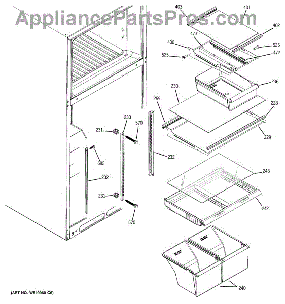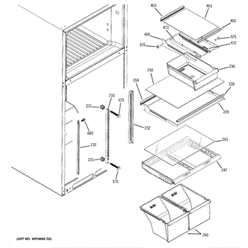 Left side slide rail for refrigerator snack pan or crisper drawer. Replace if broken, cracked, or damaged to restore smooth drawer operation. Sold individually.
