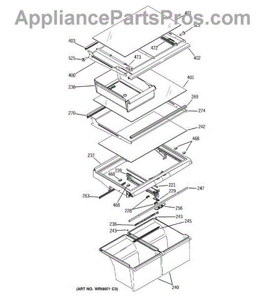 The Slide Pan Right Hand is an OEM part for GE refrigerators. This component supports and guides the movement of the refrigerator's crisper or deli drawer, allowing it to slide in and out smoothly. It ensures easy access to stored food items and helps maintain proper alignment and functionality of the drawer.