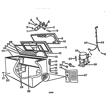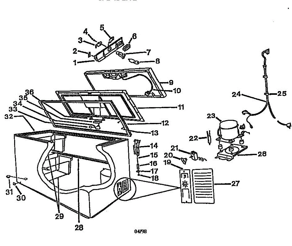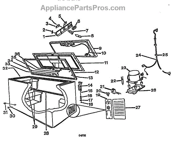 This mechanical thermostat is the appliance's temperature control. It senses internal temperature and opens or closes its electrical contacts to cycle the system, helping the unit reach and maintain the setting you select for consistent performance.