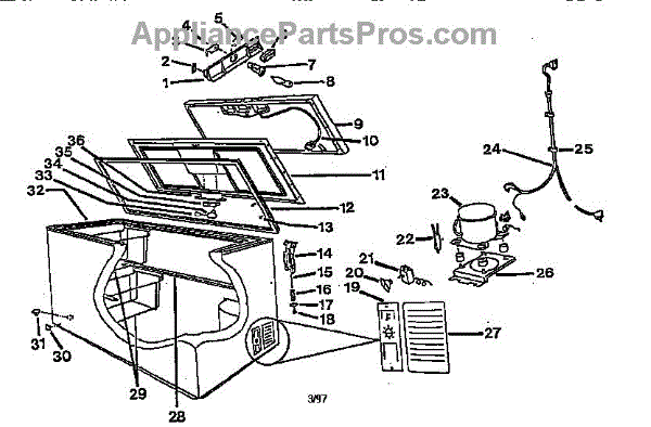 This mechanical thermostat is the appliance's temperature control. It senses internal temperature and opens or closes its electrical contacts to cycle the system, helping the unit reach and maintain the setting you select for consistent performance.