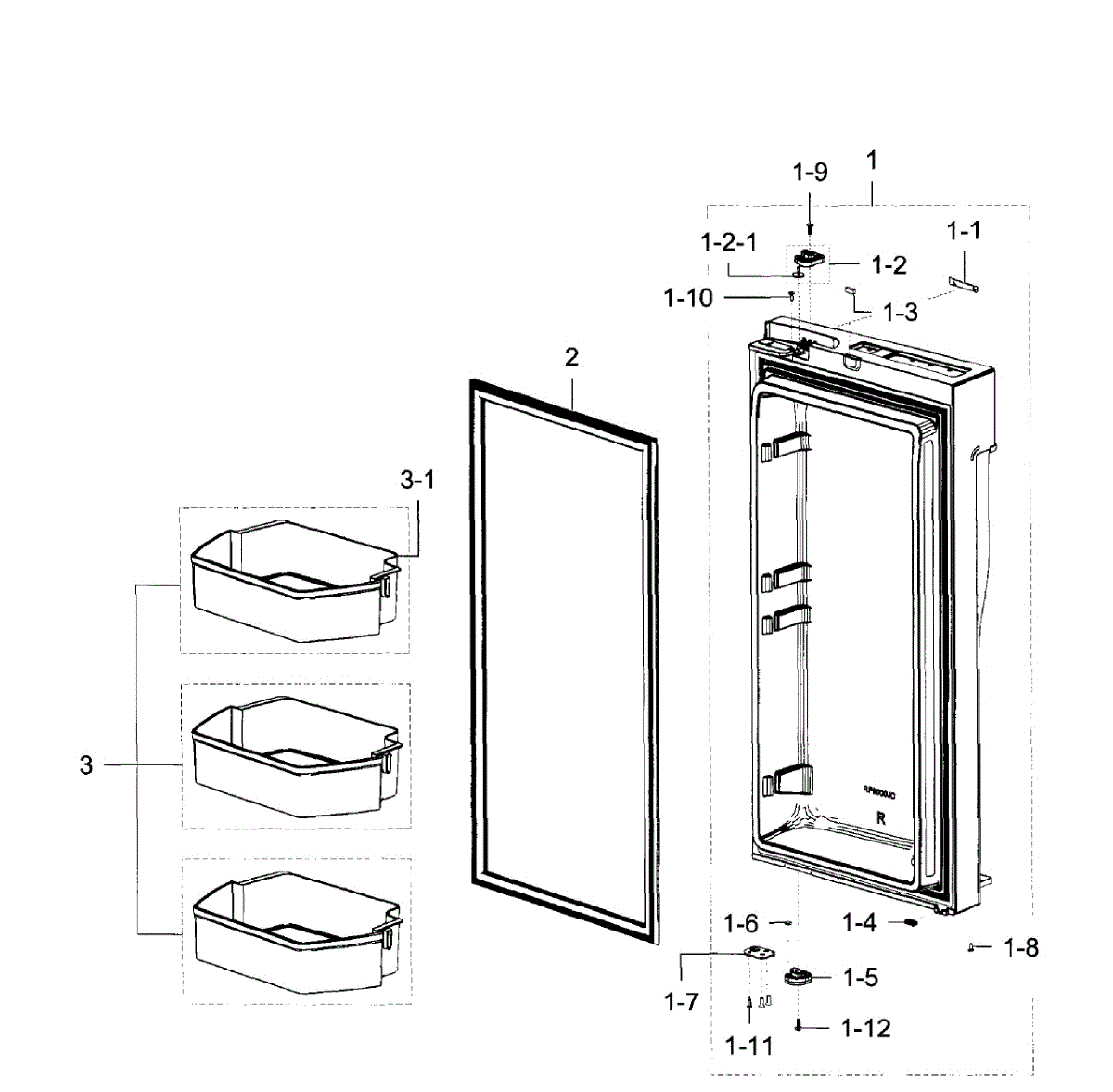 Parts for Samsung RF23J9011SR/AA / 0004: Fridge Door R Parts