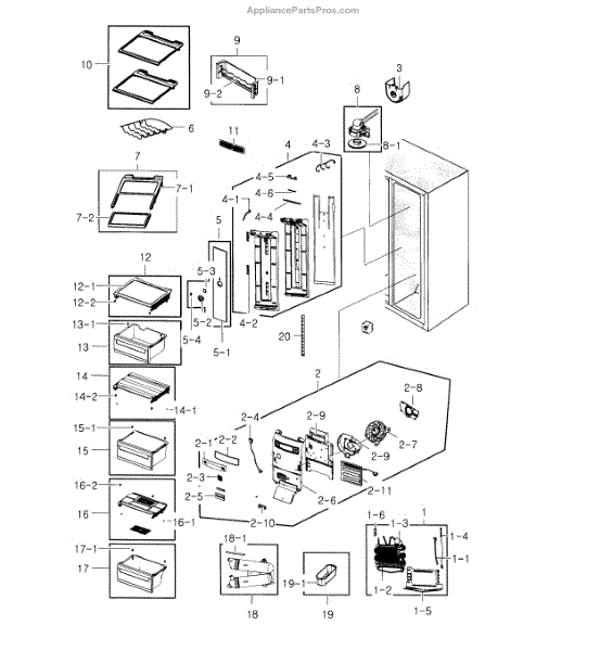 Parts for Samsung RS22HDHPNBC/AA / 0000: Fridge Parts