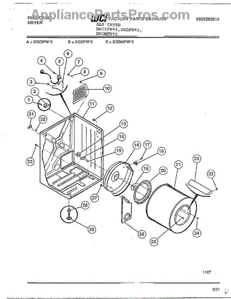 Parts for Frigidaire DGCIFW*2: Frigidaire 27" Dryer - Gas - 5995210126 Frigidaire Electric Dryer Parts
