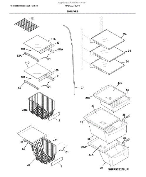 Frigidaire 241515002 Basket-Sliding OEM Part