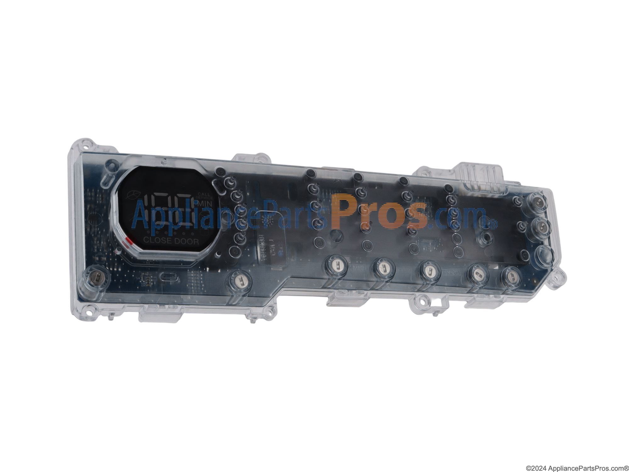 The Board Assembly is an OEM replacement part for Frigidaire front-loading washing machines. It contains a network of computer chips and circuitry that manages all cycles and settings.