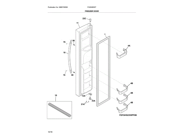 Frigidaire 807460043 Freezer Door OEM Part
