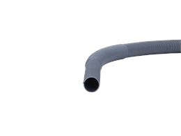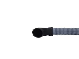 The Drain Hose is an OEM part for Frigidaire washing machines. The drain hose transports water from the washer tub to the standalone drain or out the back of a pedestal model during the drain cycle. Causes can relate to standard hose degradation from constant use, accidental kinking that restricts flow, or physical damage by pets chewing the hose. Symptoms of a bad drain hose include: