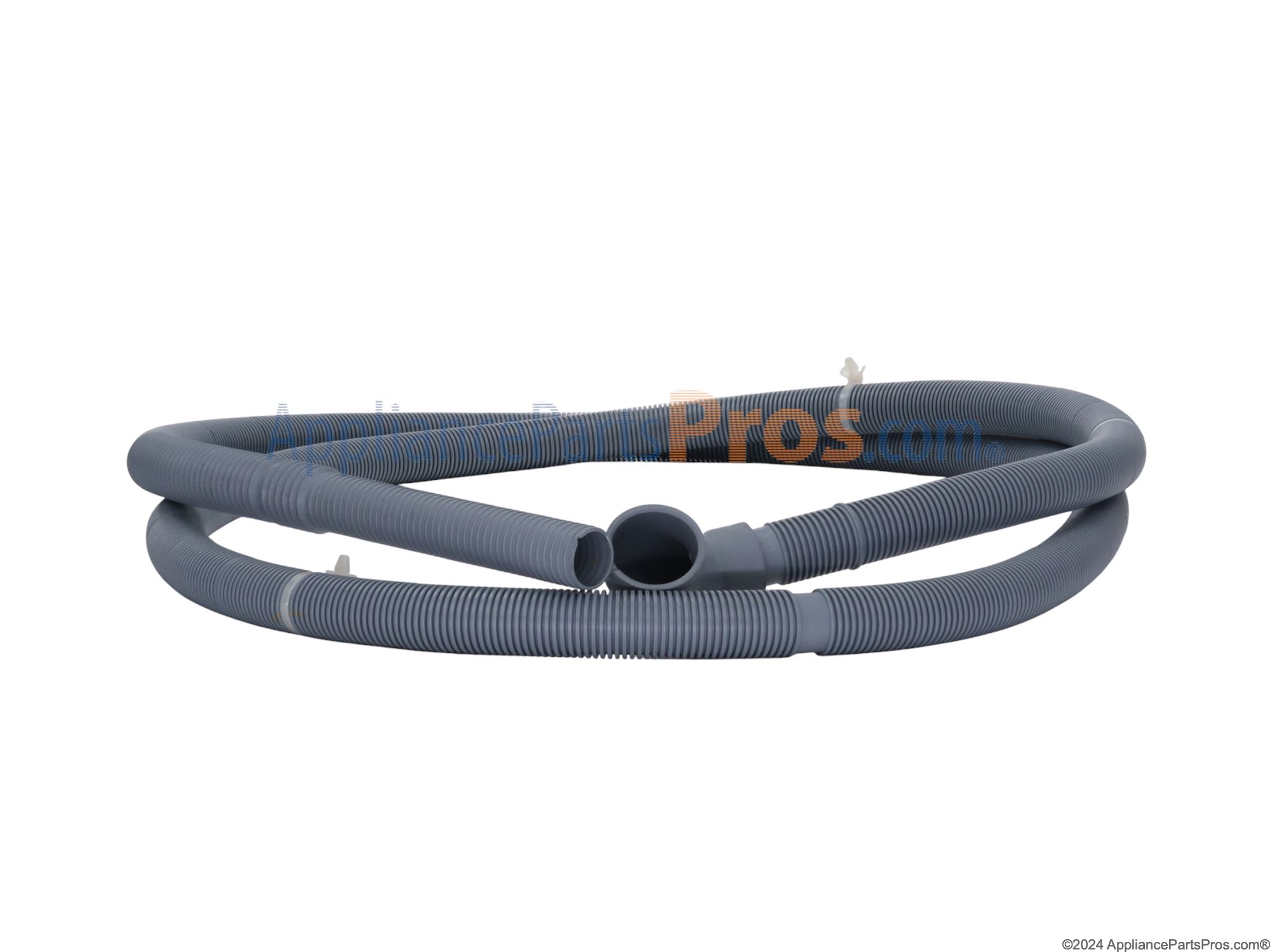 The Drain Hose With Push Mount Ties is an OEM part for Frigidaire washing machines. In addition to the drain hose, this kit includes stainless steel push mount ties used to securely fasten the hose in place.