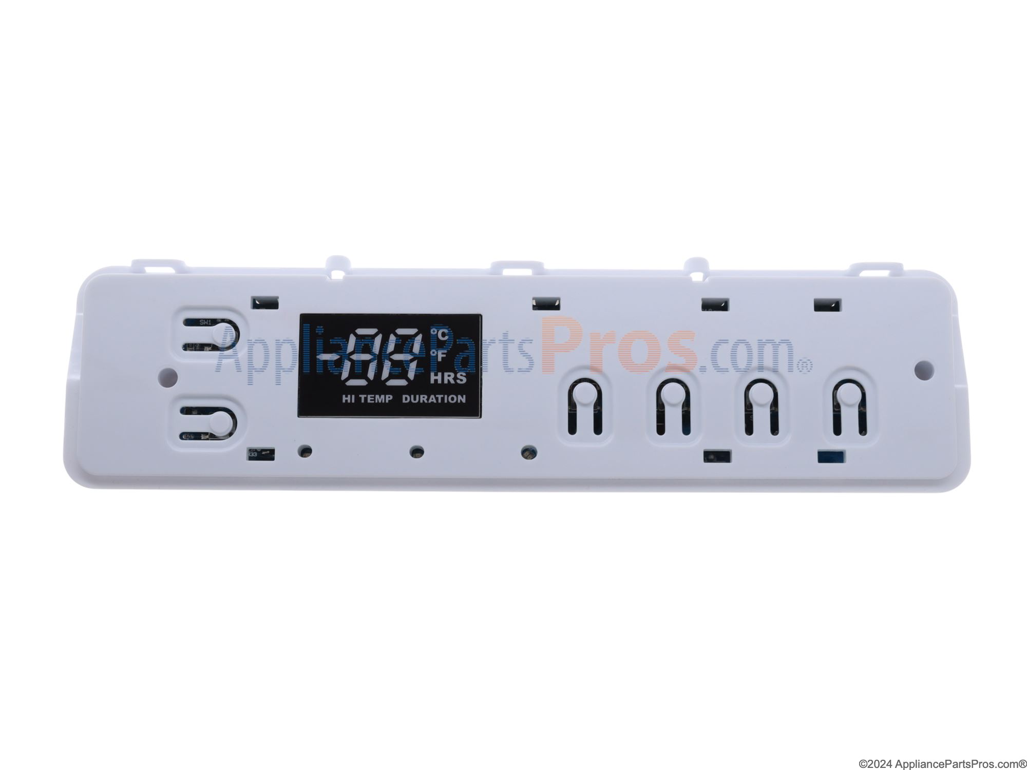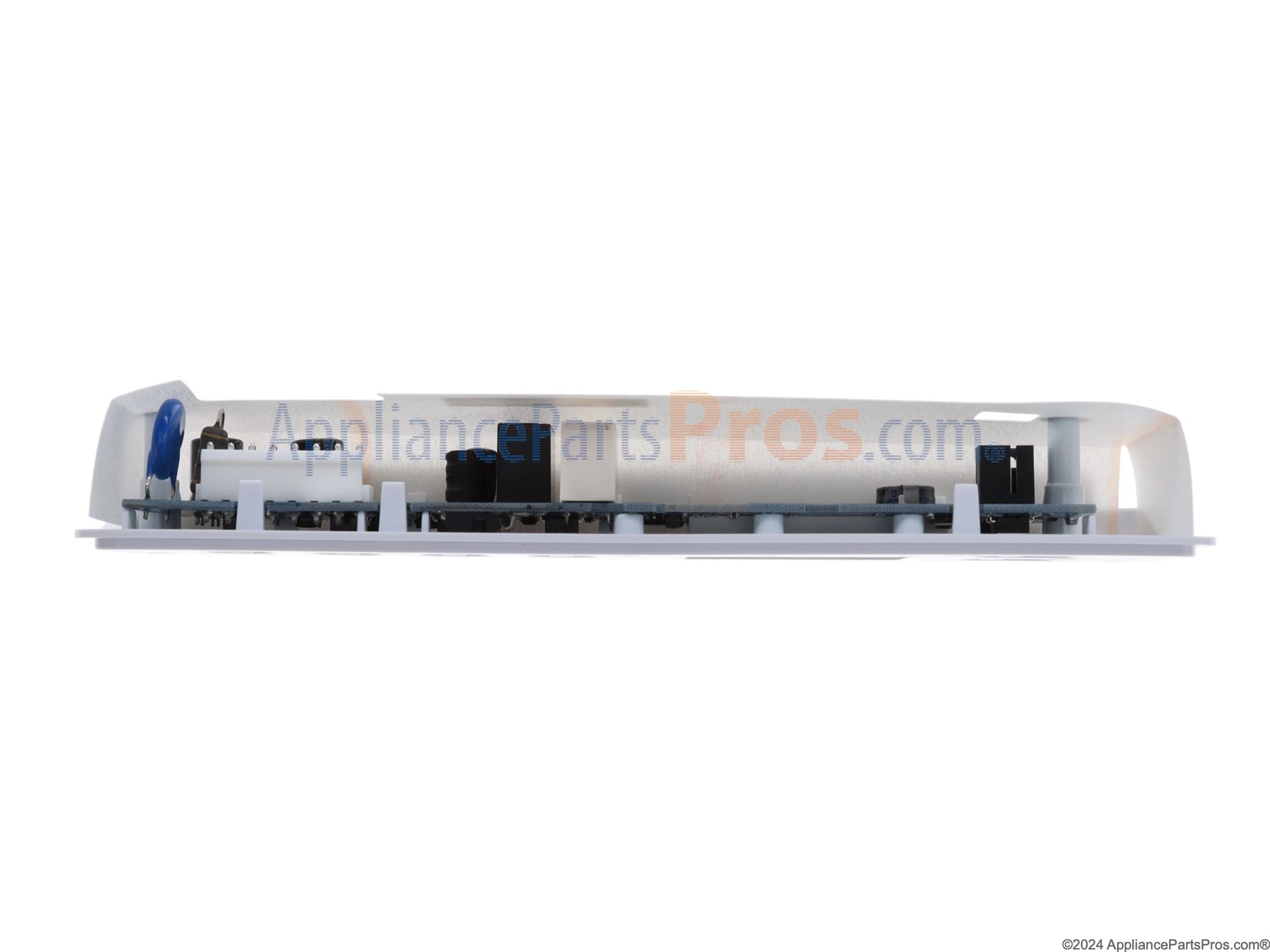 The User Control and Display Board is an OEM part for Frigidaire refrigerators. This part provides the interface for setting temperatures and controlling various functions of the refrigerator, displaying information like temperature settings, and error codes.
