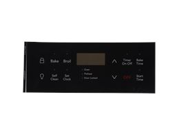 The Overlay is an OEM part for Frigidaire ranges. It provides the protective plastic faceplate that interfaces with the electronic control buttons and display.