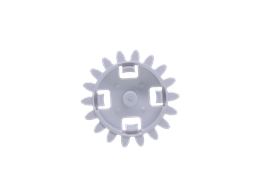 The Drawer Glide Gear is an OEM replacement part for Frigidaire refrigerators. It is a metal component located on each side of wire shelf tracks that work together to make shelf and drawer movements smooth.