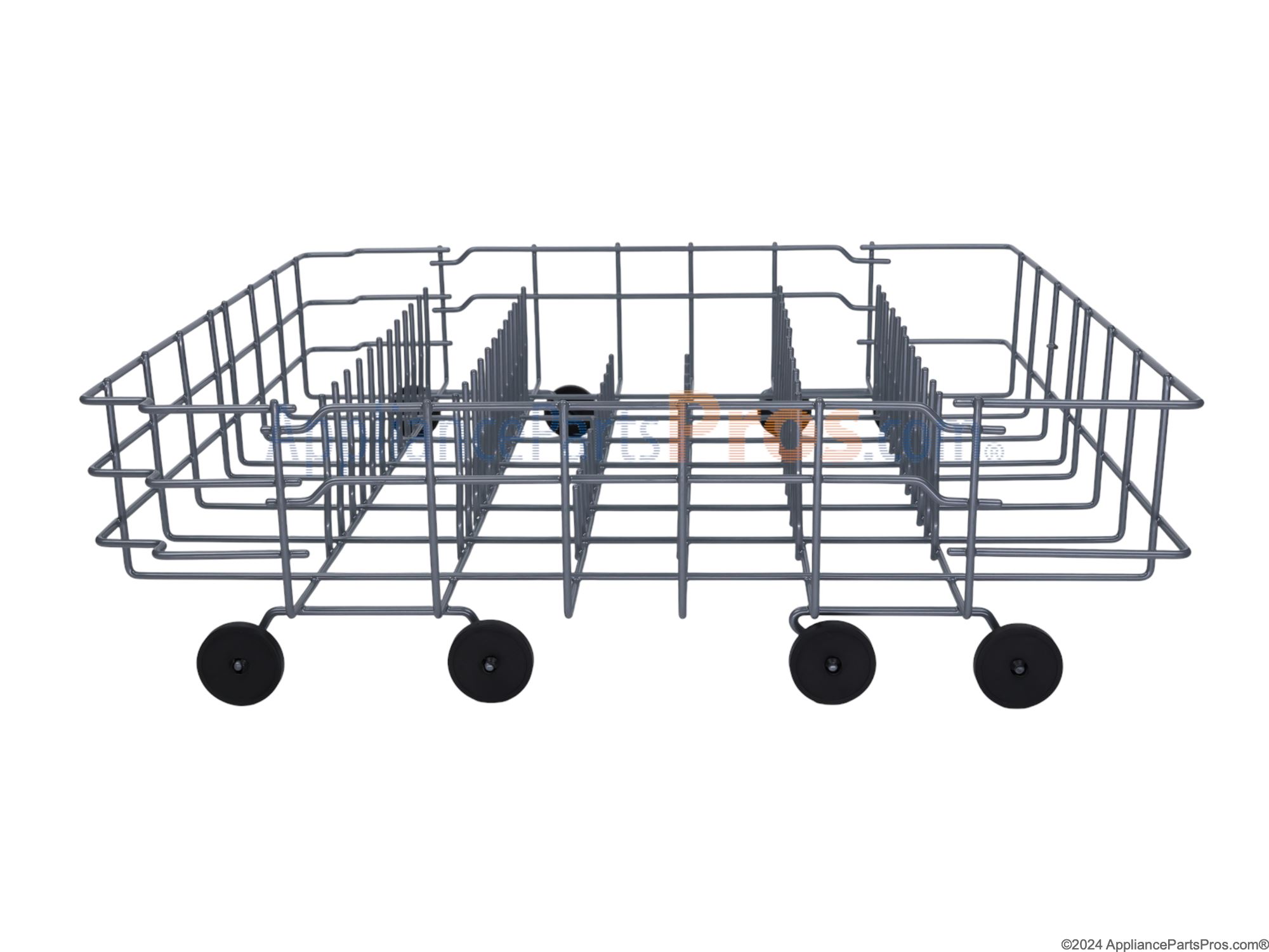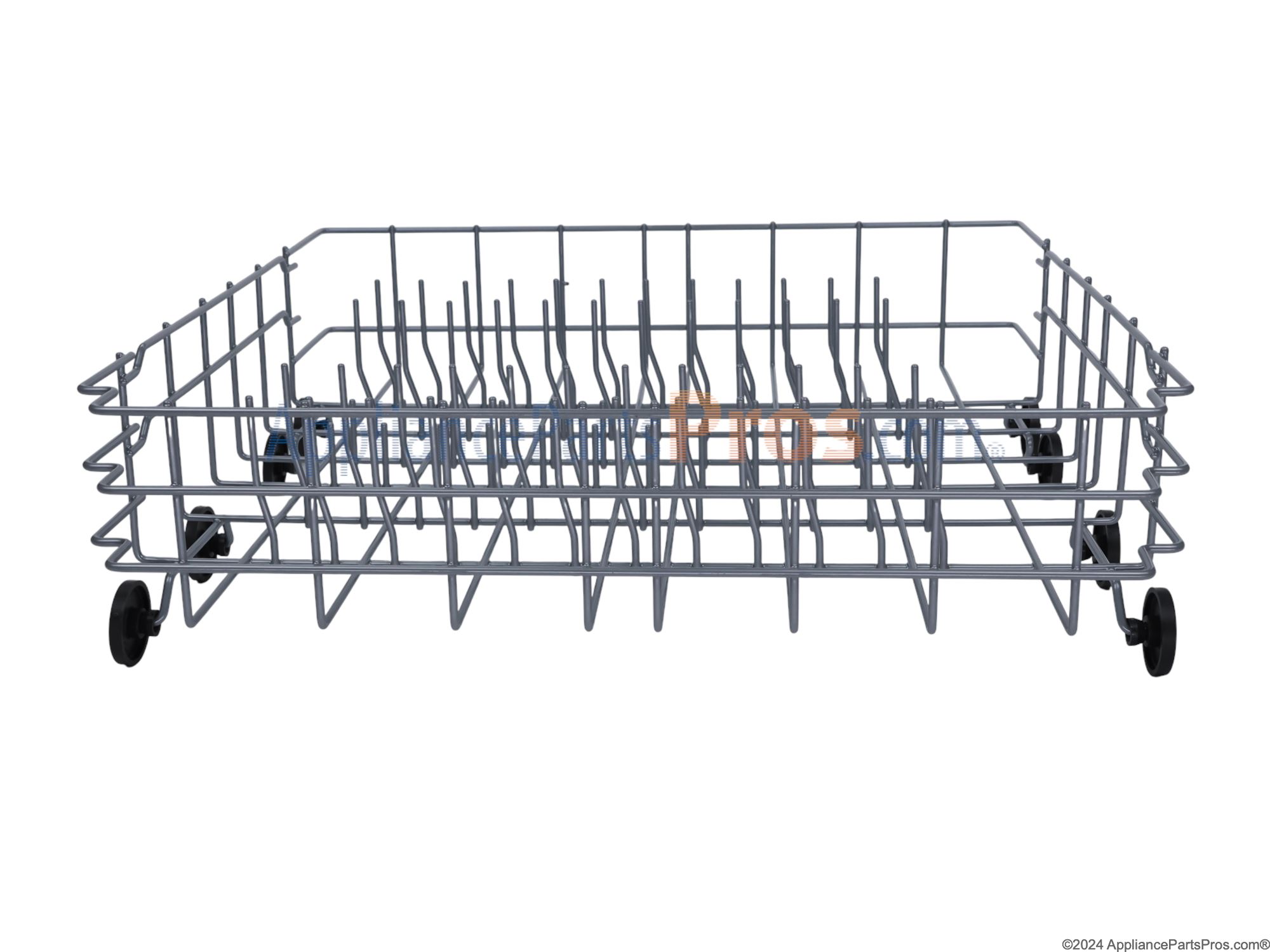The Lower Rack Assembly is an OEM part for Frigidaire dishwashers. This rack is designed to hold dishes, cups, glasses and other utensils securely in place on the lower level during the washing cycle.