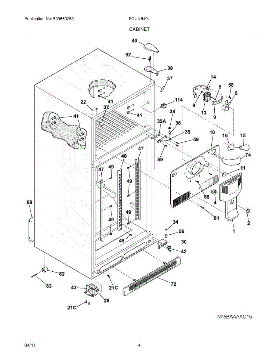 Protective cardboard or plastic cover that installs over the internal cooling system and wiring. Replace if cracked, torn, ripped, or missing.