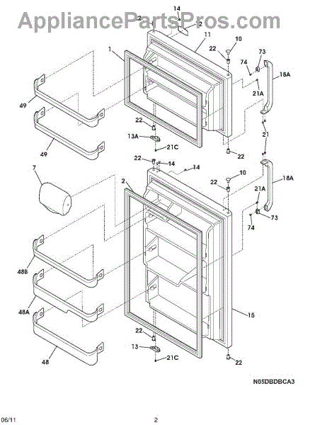The Door Bin is an OEM part for Frigidaire refrigerators. It is a storage compartment designed to fit securely onto the interior of the refrigerator door, providing convenient and easily accessible storage space for items like beverages, condiments, or other small food items.