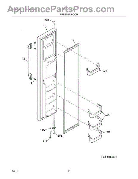 The Upper Freezer Door Bin is an OEM part for Frigidaire side-by-side refrigerators. It provides organized storage for freeze-sensitive items like ice cream in the freezer door. The door bin measures approximately 13"L x 5 1/2" W.