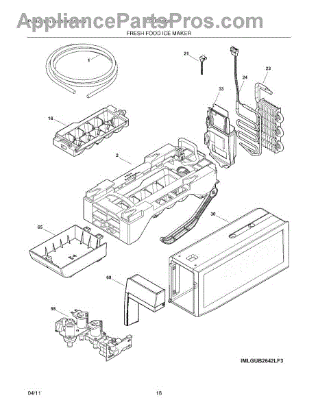 Ice maker leaking water or producing malformed cubes? A cracked water fill chute allows water to leak instead of filling properly. Simple snap-in repair.