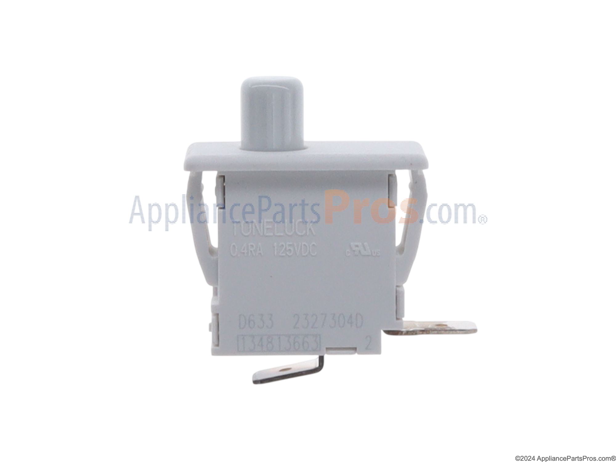 The Door Switch is an OEM part for Frigidaire clothes dryers. It is an electronic component located on the door frame that detects when the dryer door is latched closed. The switch communicates this information to the control board, allowing the dryer to operate properly by preventing operation if the door is open.