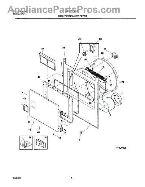• Holds the dryer lint screen in place so lint is collected instead of entering the cabinet