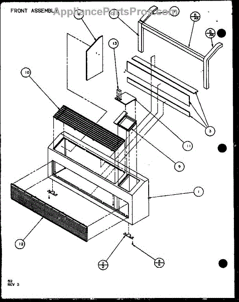 Parts for Amana PTH09300F/P1102601R: Front Assembly (Pth12300e / P9806815r) (Pth12400e / P9806915r) (Pth12300ec / P9811815r) (Pth12400ec / P9872315r) Parts