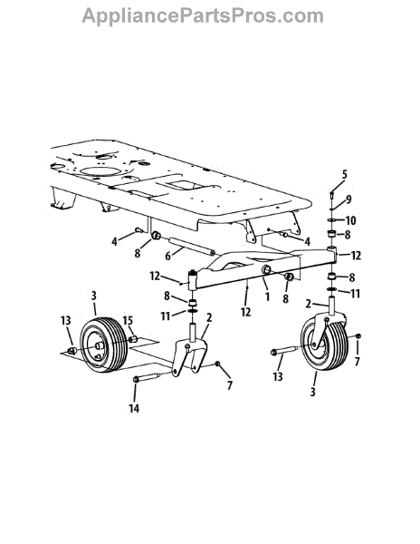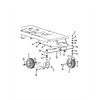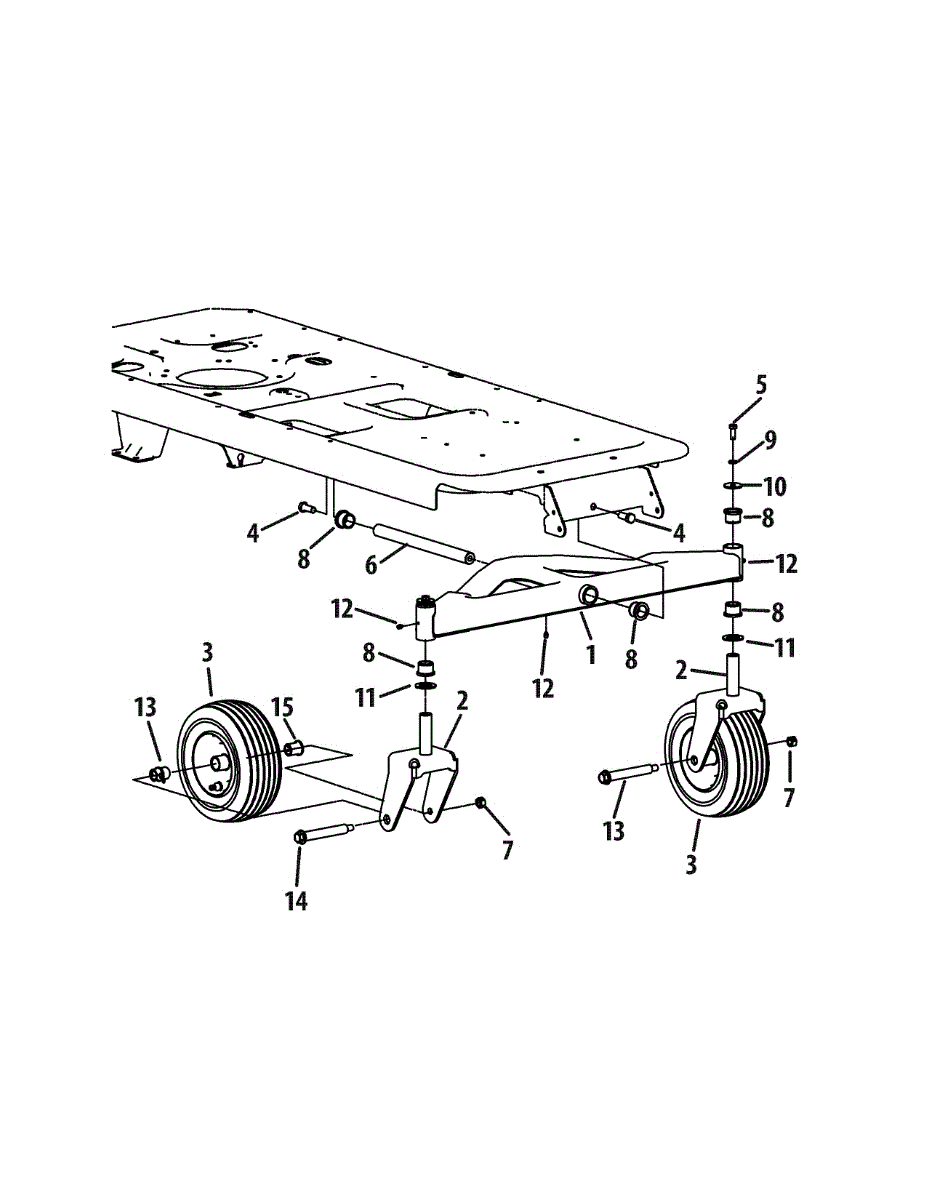 Caster wheel assembly for rear-engine riding mowers and zero-turn models. Attaches to mower deck bottom for smooth rolling. Replace if cracked or worn.