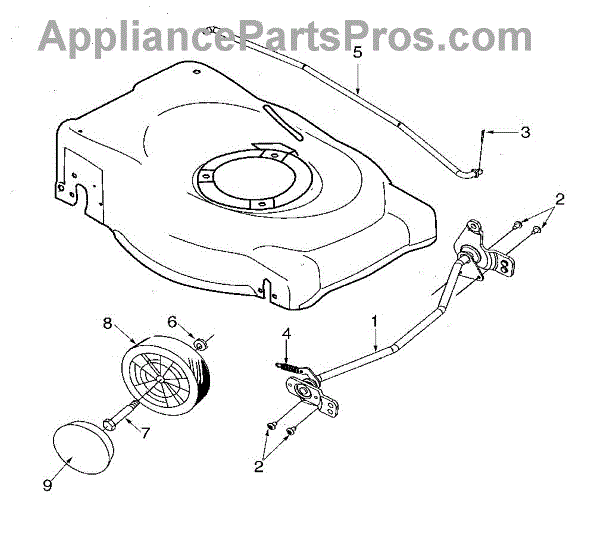 This is the front wheel assembly that is used by a large number of manufactures as the standard wheel for push mowers. This wheel is a tough, black rubber wheel fitted onto a sturdy white chassis. Since it is not a pneumatic wheel, there is no concern that it will roll over hidden debris and be damaged. Push wheels such as these often last the lifetime of a Lawn Mower. However, there are occasions when the housing of the mower is dropped and the wheel becomes warped or broken. It's also the case that, with constant use, the wheels can lose tread, making them harder to maneuver in tough mowing conditions. It has also been reported that the tires will wear and become smaller in circumference over time, meaning it will require more gasoline to mow the same amount of yard. The front wheels are easily replaced. After removing the plug cap and stabilizing the mower, simply use a socket wrench to remove the center bolt from the wheel. It's a good idea to use a dry lubricant like graphite on the axle before replacing it. This OEM guaranteed replacement part is compatible with Ryobi, Yard Machines, Troy-Bilt, Cub Cadet, Husky, Yard-Man, and MTD push mowers.