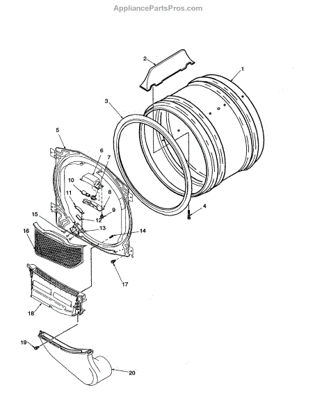 Parts for Amana ALG643RMC-PALG643RMC: Front Bulkhead, Air Duct And Drum Parts