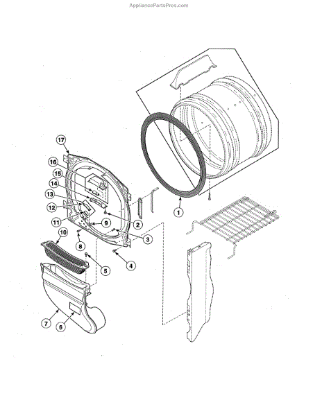 This lint filter captures lint and fibers from the drying airflow to protect the blower and vent path. Replacing a damaged or missing screen helps maintain airflow, reduce lint buildup, and keep drying performance consistent.