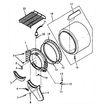 Parts for Speed Queen NG6619W53821: Front Bulkhead, Air Duct, Felt Seal And Cylinder Parts