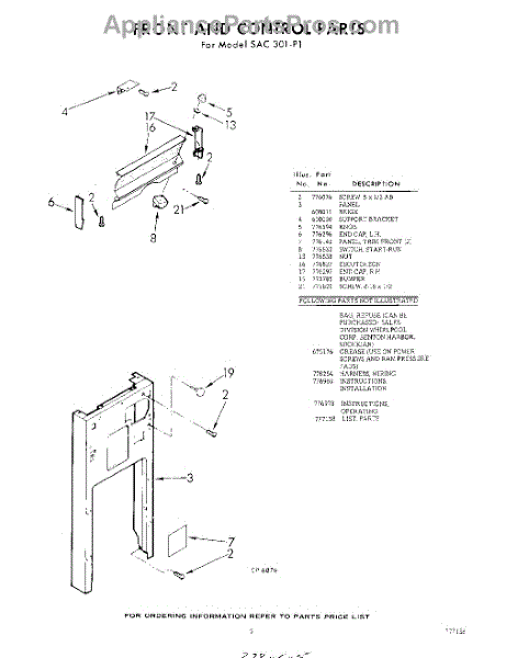 Parts for Whirlpool SAC301P1: 05 - Front And Control , Lit / Optional Parts
