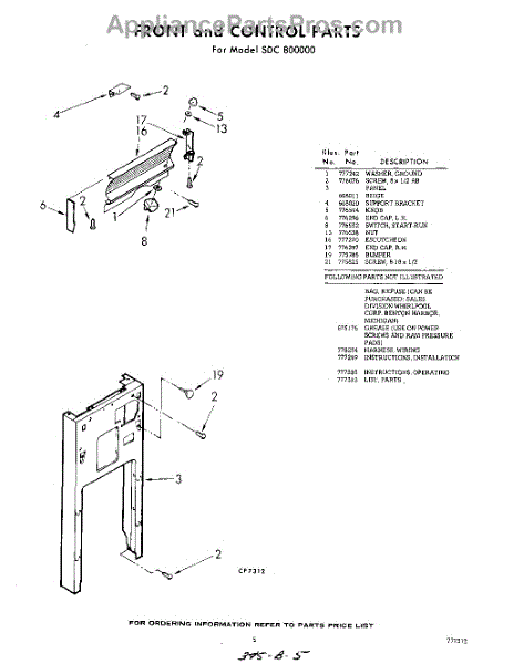 Parts for Whirlpool SDC800000: 05 - Front And Control , Lit / Optional Parts