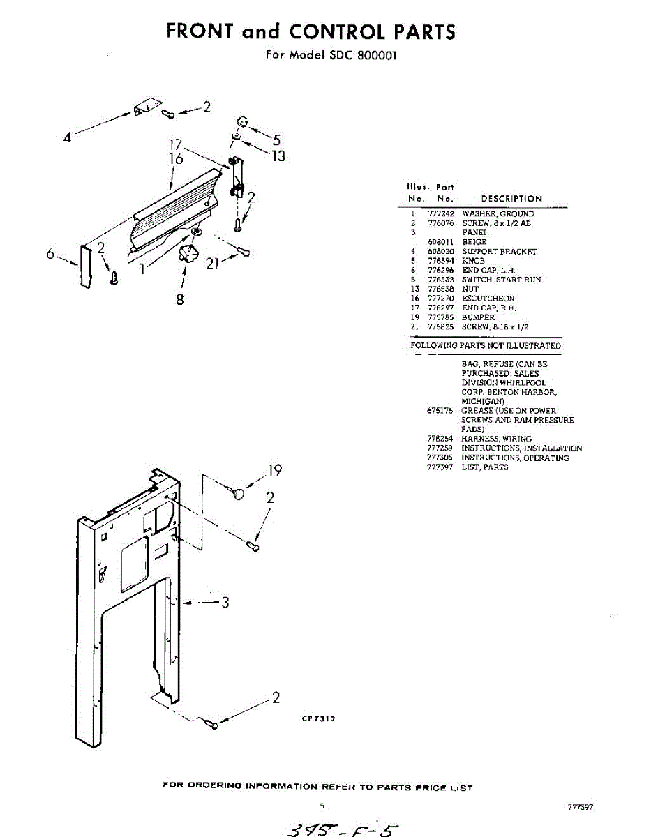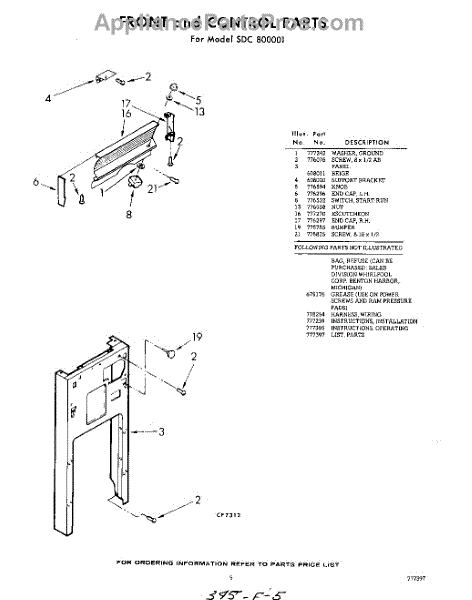 Parts for Whirlpool SDC800001: 05 - Front And Control , Lit / Optional Parts
