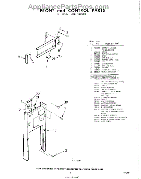 Parts for Whirlpool SDC800003: 05 - Front And Control , Lit / Optional Parts