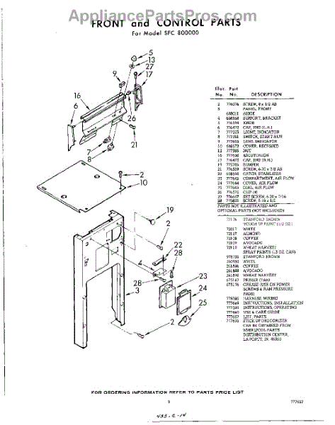 Parts for Whirlpool SFC800000: 05 - Front And Control , Lit / Optional Parts