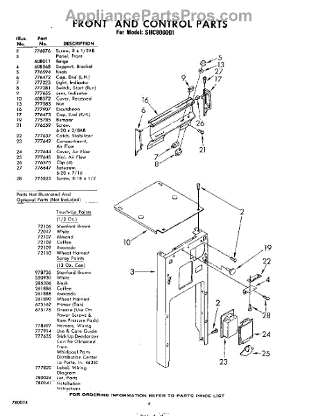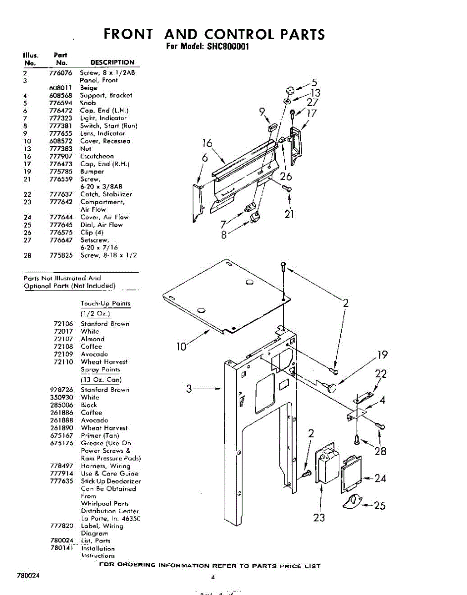 Parts for Whirlpool SHC800001: 04 - Front And Control , Lit / Optional Parts