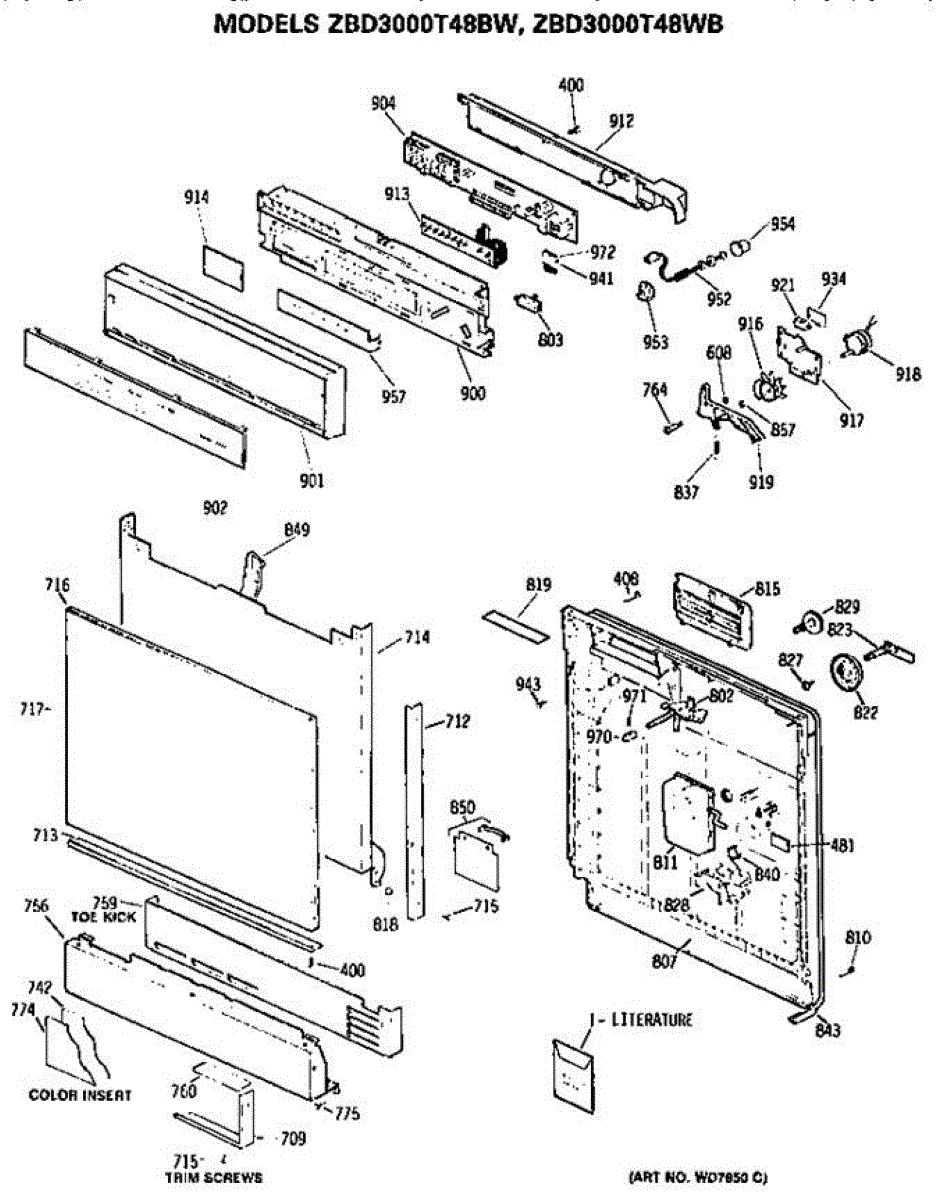Parts for Ge ZBD3000T48BW: Front / Control Panel Parts