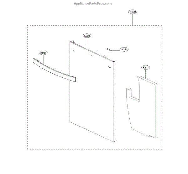 The Outer Door Panel is an OEM part for LG dishwashers. It serves as the exterior covering of the dishwasher door, providing both a protective barrier and an aesthetic appearance. This panel helps shield the internal components of the dishwasher door, including the control panel and insulation, from external damage and moisture.