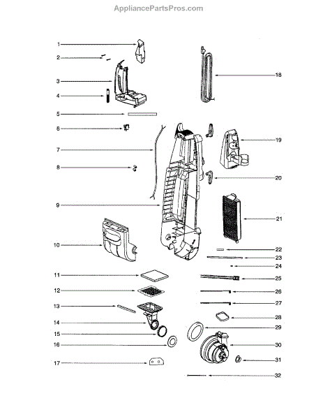 Parts for Eureka 5197B: Front Cover / Motor Parts
