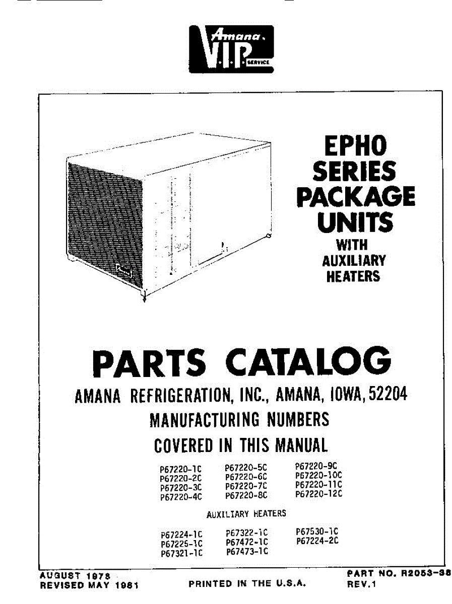 Parts for Amana EPH03000-1B/P67220-11C: Front Cover Parts