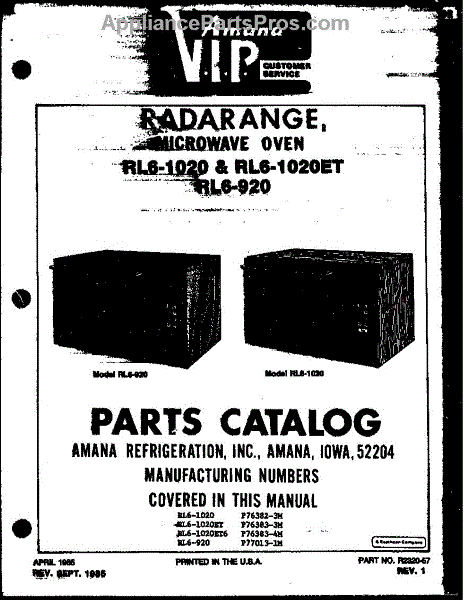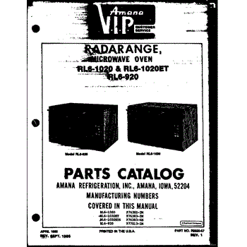 Parts for Amana RL6-920/P77013-1M: Front Cover Parts