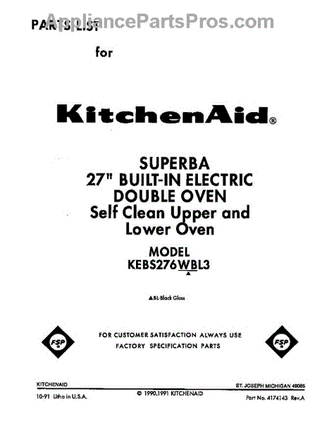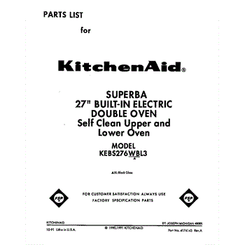 Parts for Kitchenaid KEBS276WWH3: Front Cover Parts