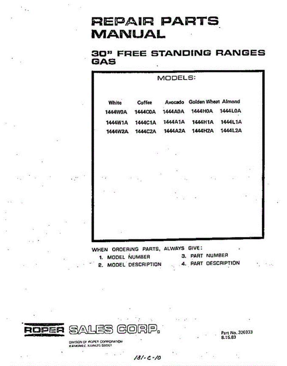 Roper Range Parts