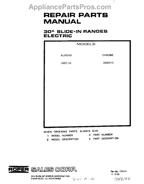 Roper Range Parts