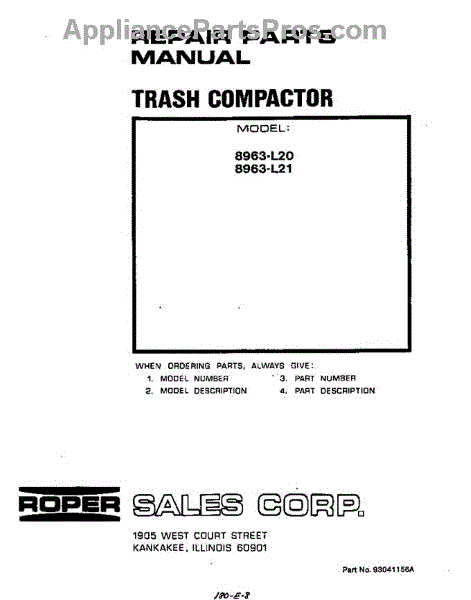 Parts for Roper 8963L21: Front Cover Parts