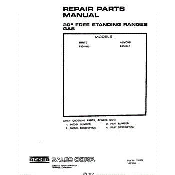 Parts for Roper F4307W0: Front Cover Parts