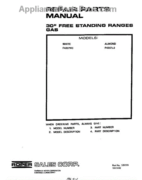 Roper Range Parts