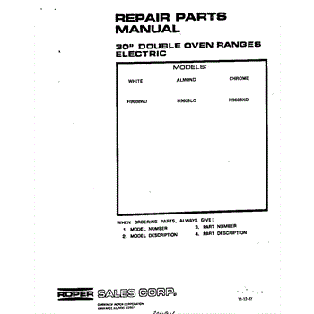 Parts for Roper H9608W0: Front Cover Parts