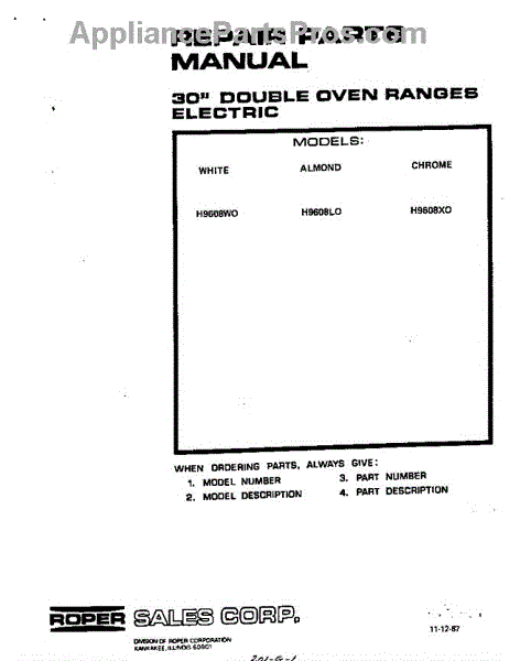 Roper Range Parts