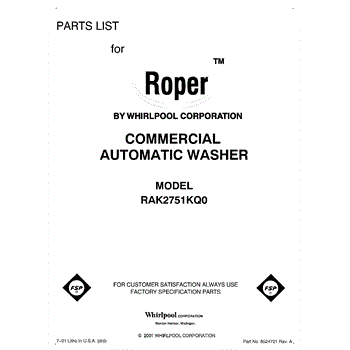 Parts for Roper RAK2751KQ0: 01 - Front Cover Parts