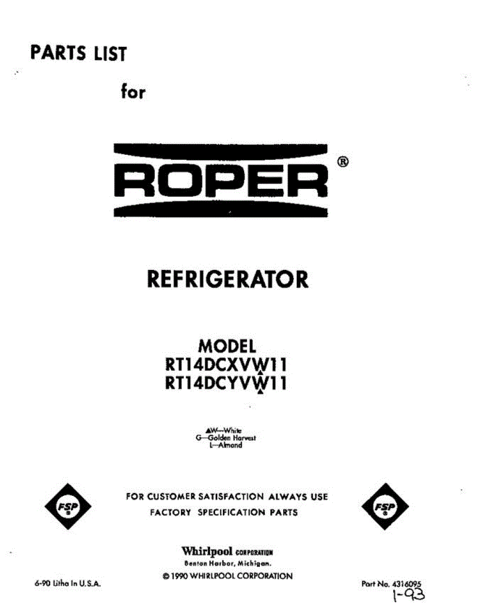Roper Refrigerator Parts
