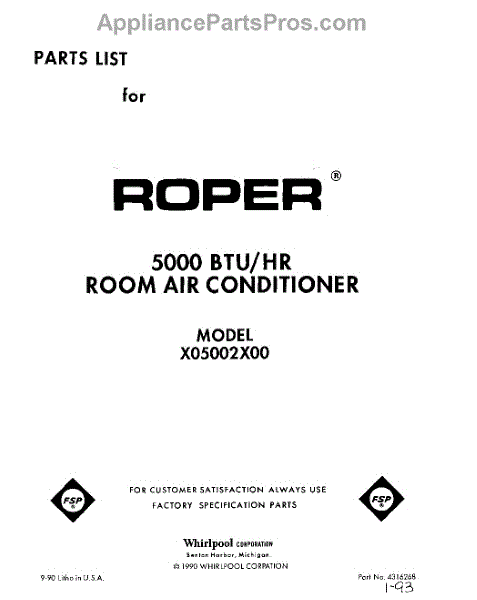 Roper Air Conditioner Parts